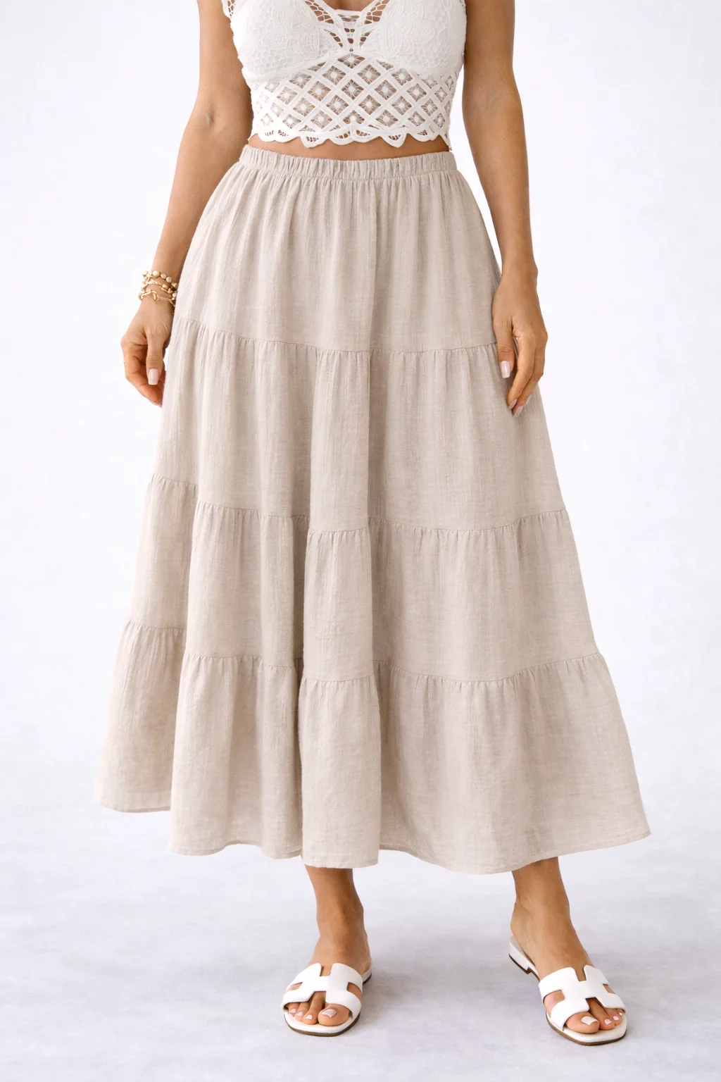 Mušelínová sukně SAHARA v přírodním béžovém odstínu je dokonalým kouskem pro teplé letní dny. Vzdušný, jemně strukturovaný materiál krásně splývá, působí přirozeně elegantně a zároveň ti dopřeje maximální pohodlí po celý den.