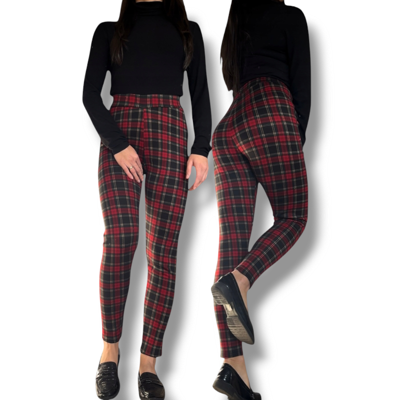 Červené kostkované zateplené legíny – styl a pohodlí v jednom!